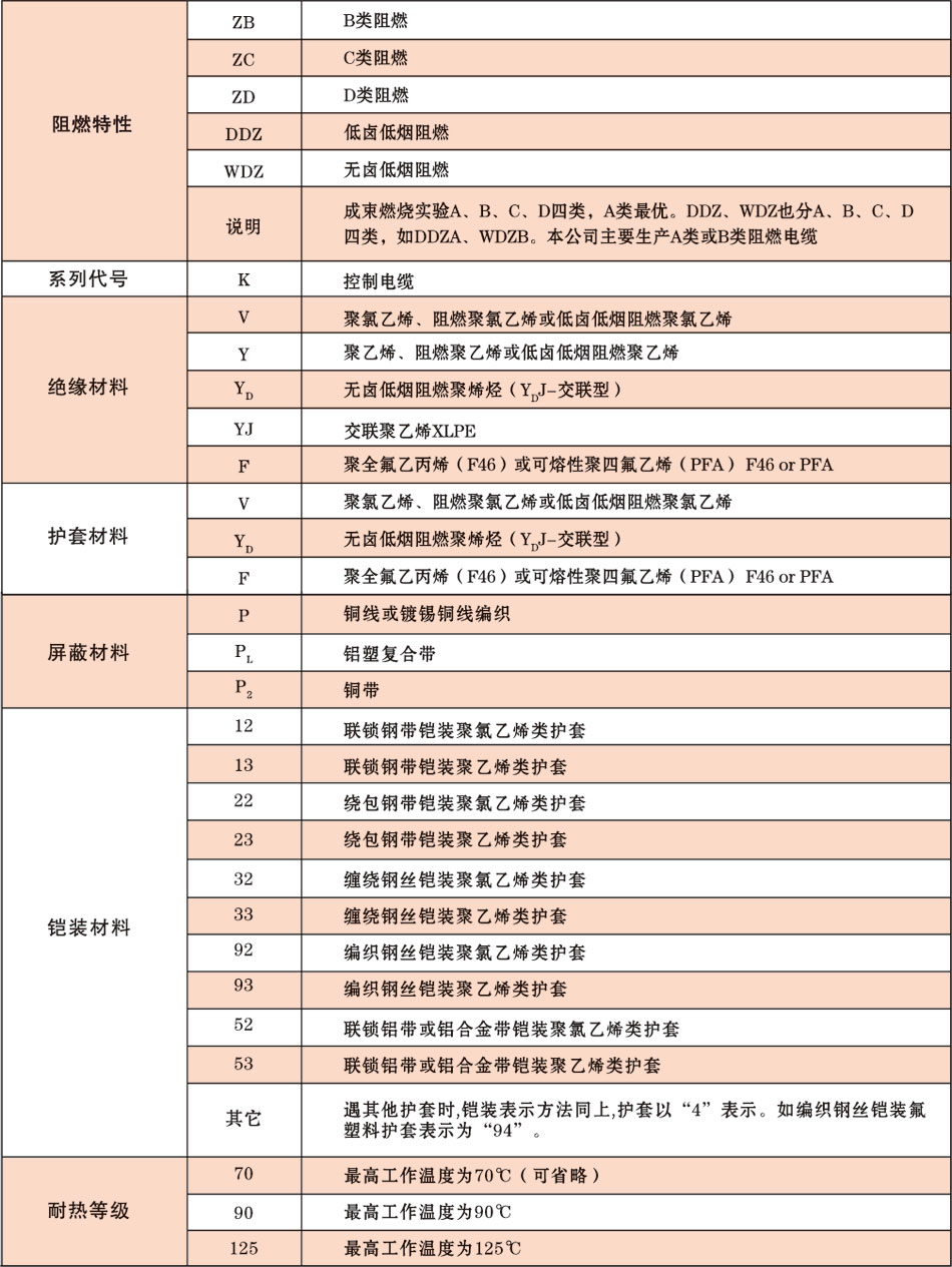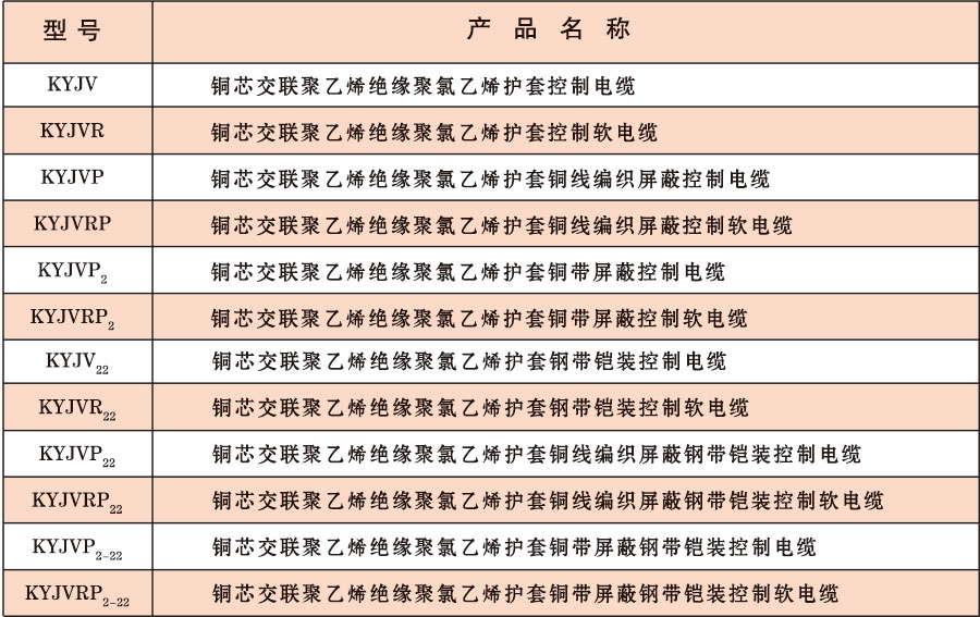 注:聚乙烯绝缘控制电缆以“Y”代替“YJ”即可。