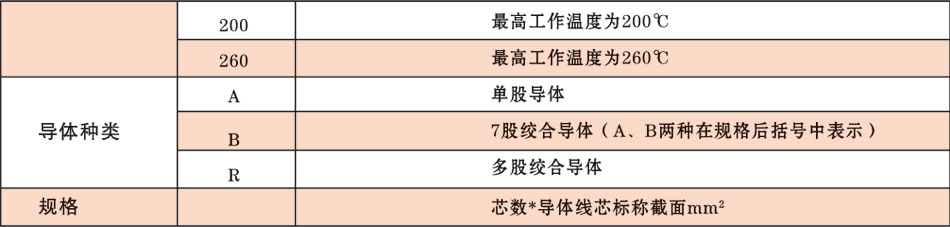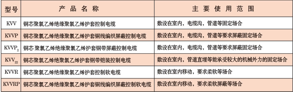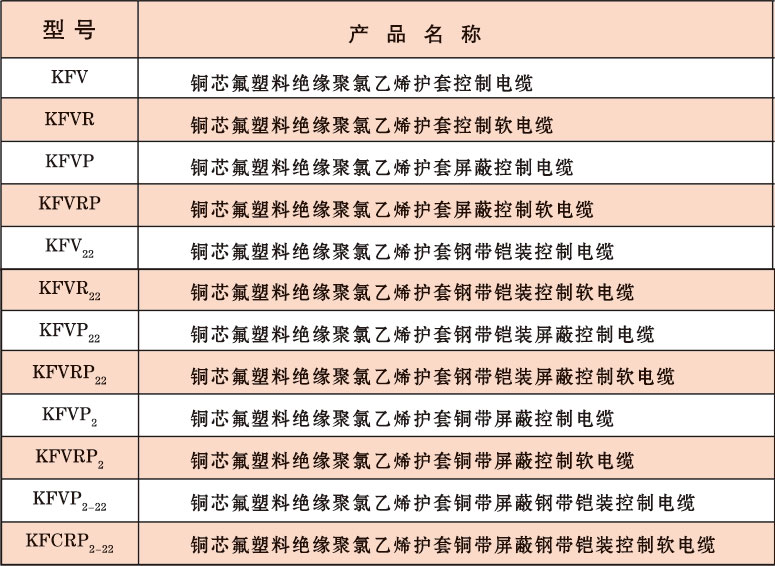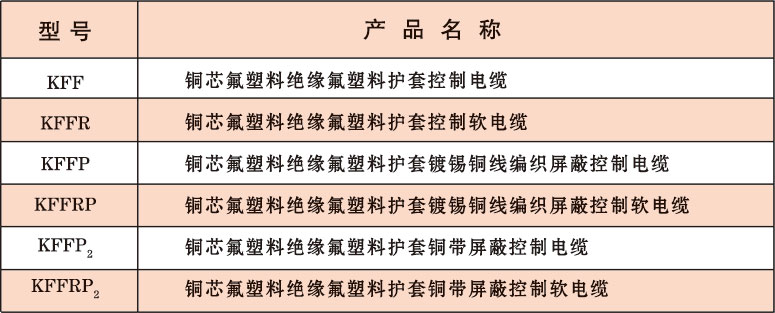 注:氟塑料绝缘和护套聚氯乙烯护套控制电缆在芯数多,截面大的情况下代替氟塑料绝缘和护套耐高温