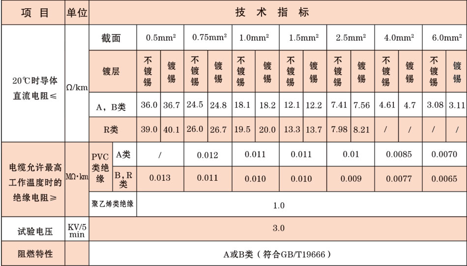 3.低环境温度:聚氯乙烯绝缘和护套;固定敷设-40℃,非固定敷设-15℃;