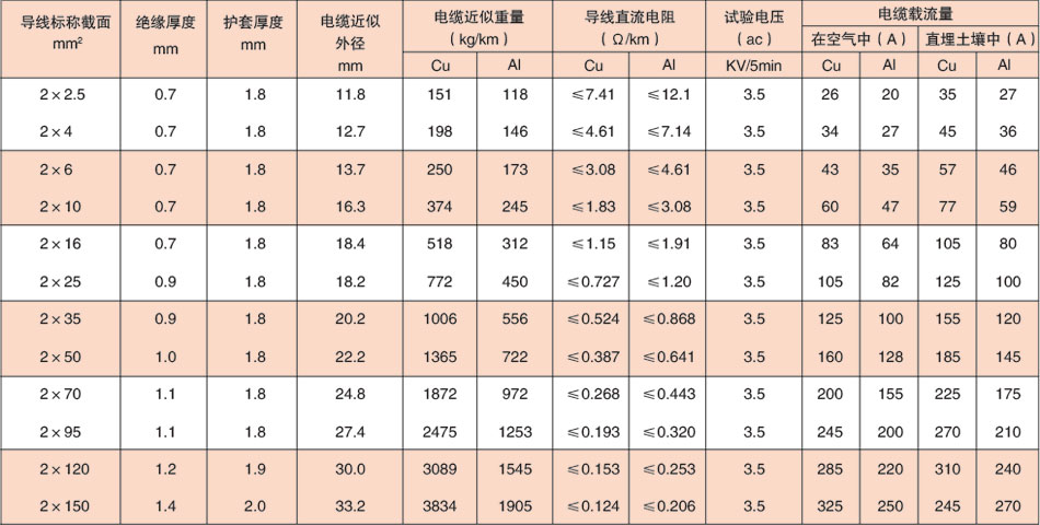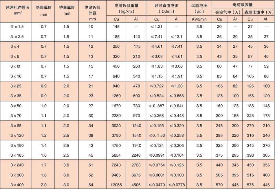 3.电缆的运行温度:聚氯乙烯护套不超过90℃;聚乙烯护套不超过80℃。