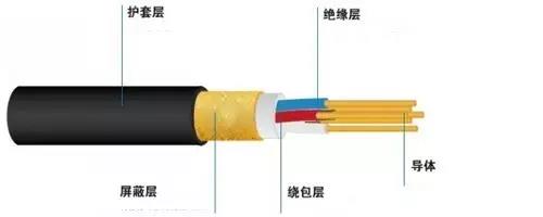 在通讯控制电路中,屏蔽电缆的使用很常见,用来阻止外界电磁波的信号干扰,屏蔽电缆是在绕包层和外护套之间添加,屏蔽层常见的有铝箔、铜带、铜编织网等。