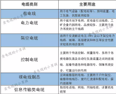 根据基本用途,确定电缆类别